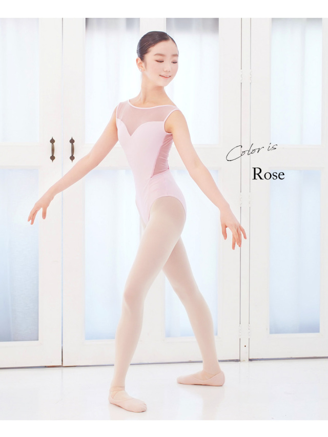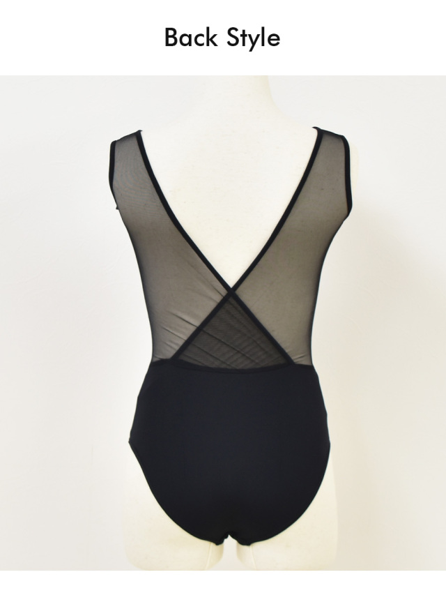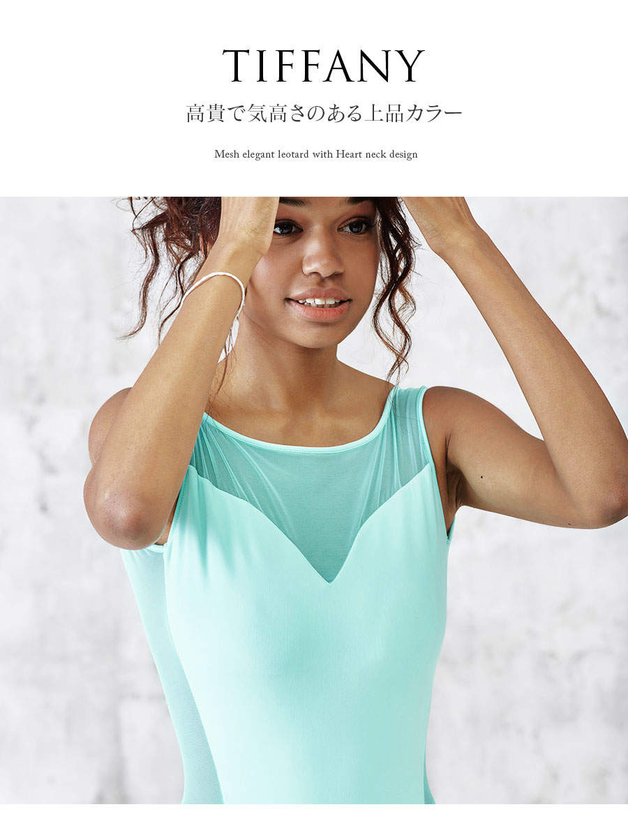 胸元のハート型のカット、バックメッシュのカシュクールデザインが素敵なタンクレオタード。