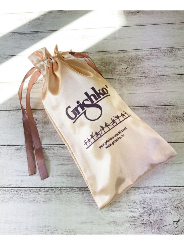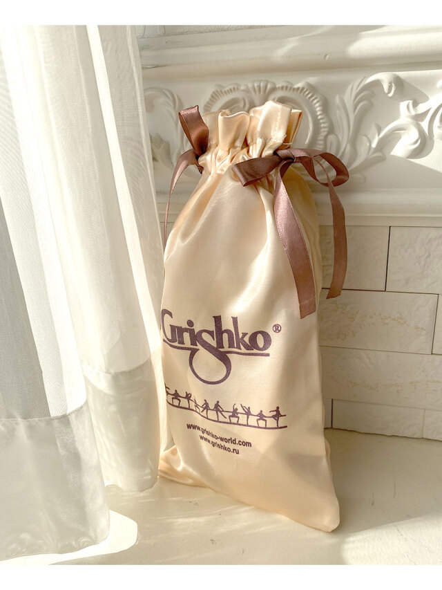 艶やかなサテン生地で高級感がありとても美しい。Grishkoロゴ部分にはキラキラと輝くグリッターが施されています。