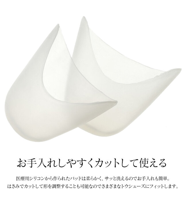 高品質の医療用シリコンを使用、薄くライトに作られたパッドは柔らかく快適な使い心地を実現。長時間のリハーサルや、レッスン、演技中のつま先の痛みをやらわげ、トウにかかる重さを軽減。マメ予防にも。またシリコンなのでお手入れも簡単。さっと洗いやすく、耐久性もあるのでとっても長持ちします。ハサミでカットして、形を調整できるので、さまざまなトウシューズにフィットする人気のアイテムです。