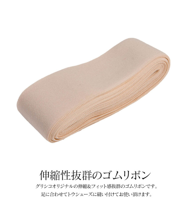 グリシコ社製のトウシューズストレッチリボンです。 伸縮性抜群なので足に快適にフィットします。 ※グリシコ社のトウシューズにリボンは付属していません。こちらのリボンを足に合わせて縫い付けてお使いいただけます。