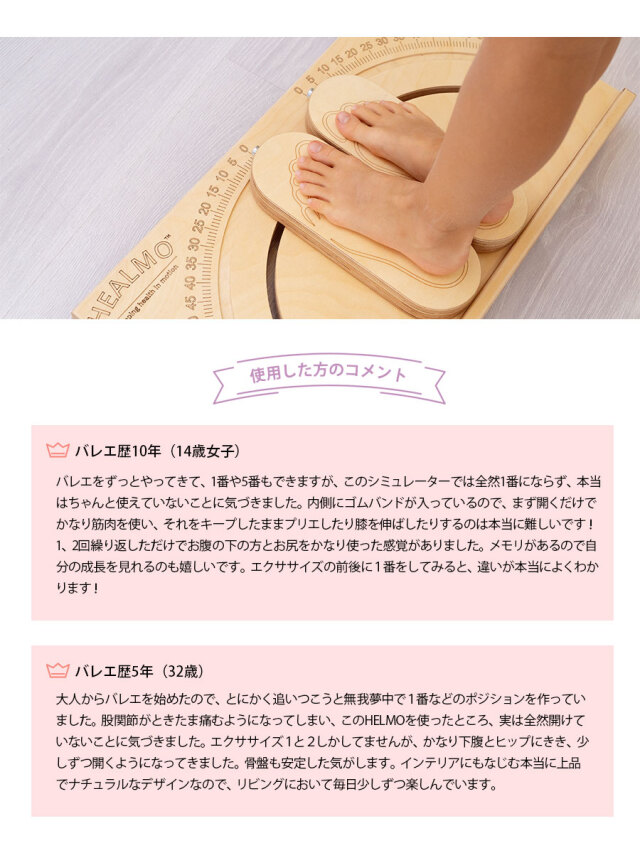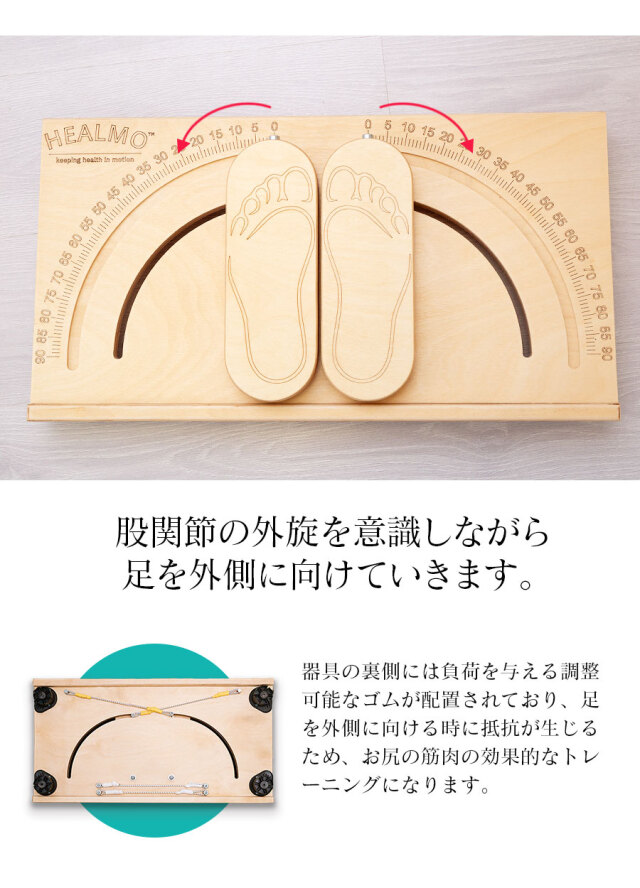 商品カテゴリ:HEALMO healmo ヒールモ ヘルモ バレエ ストレッチ ウォームアップ トレーニング 股関節広げる 骨盤安定 ターンアウト バレエポジション アンドゥオール 体幹強化 深層外旋六筋 深層筋 インナーマッスル 自宅ストレッチ 柔軟性 安定性 ロシア ドクターカブルコフ kablukov