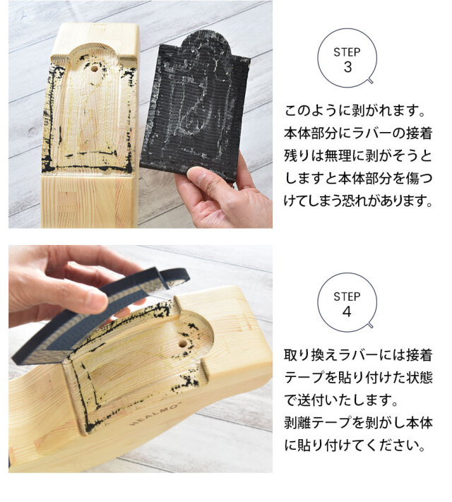 毎日のトレーニングやエクササイズで摩耗やへこみが気になったらラバーのお取換えをおすすめします。当店から接着テープをお付けした状態でお届けするので簡単にお取換えが可能です。