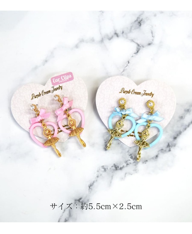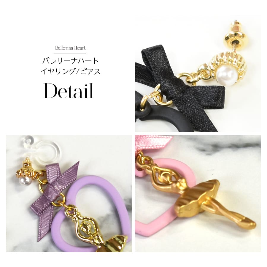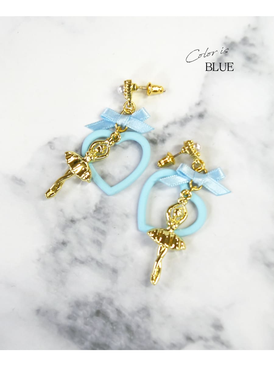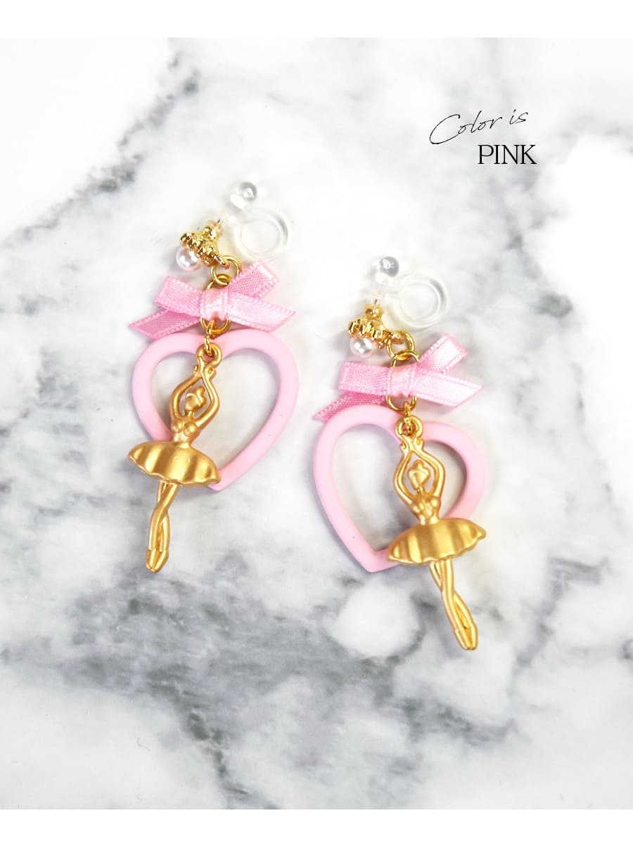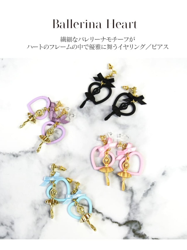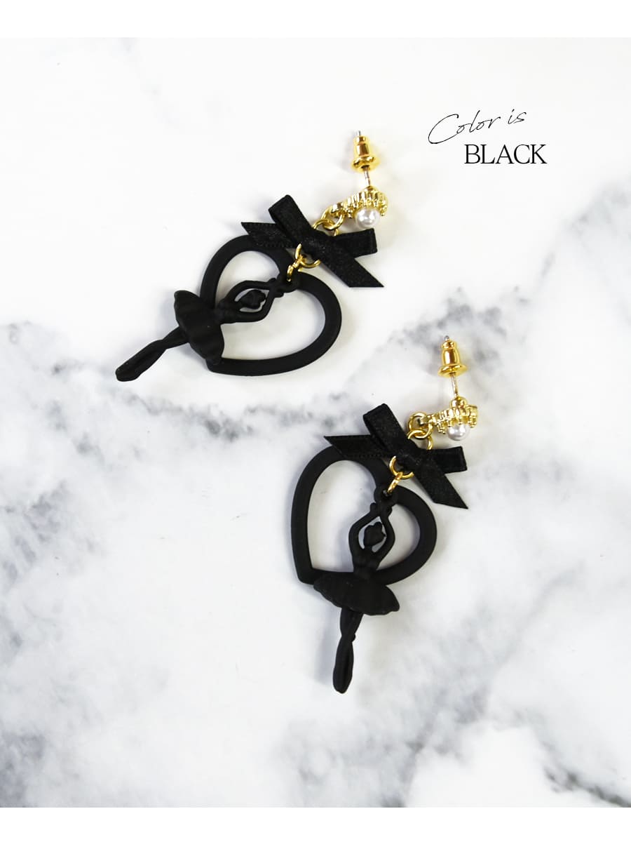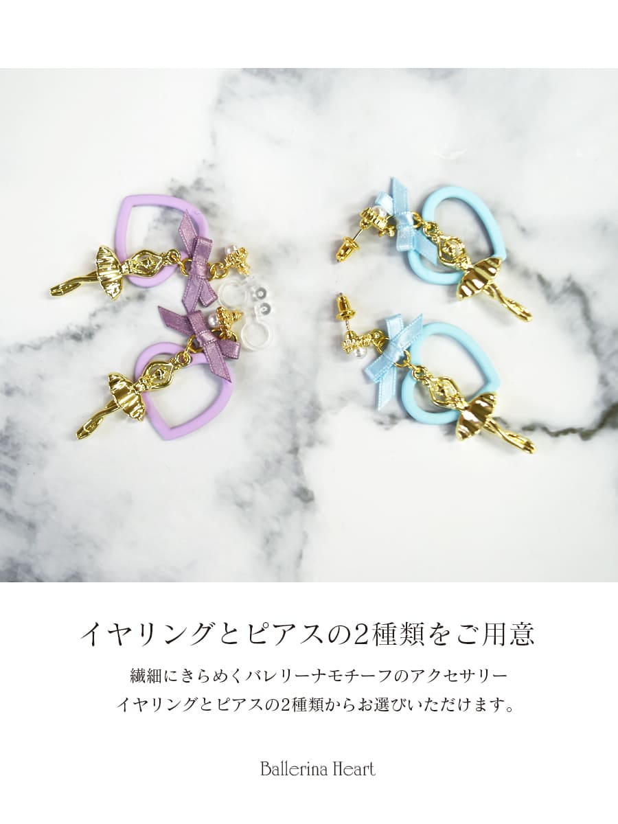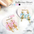 繊細なバレリーナモチーフが、ハートのフレームの中で優雅に舞うイヤリング/ピアス。