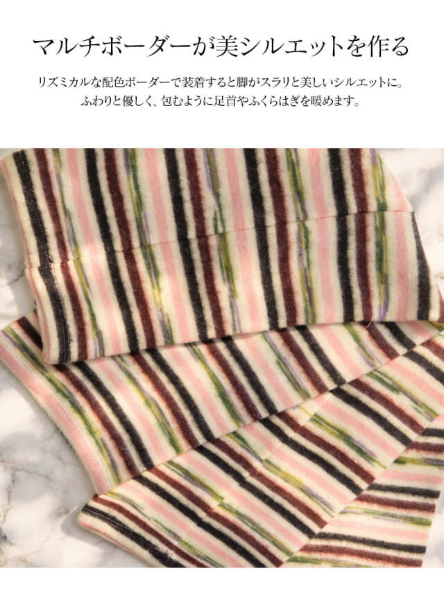 多彩なカラーが織りなすマルチボーダー柄は、コーディネートのアクセントにもぴったり。