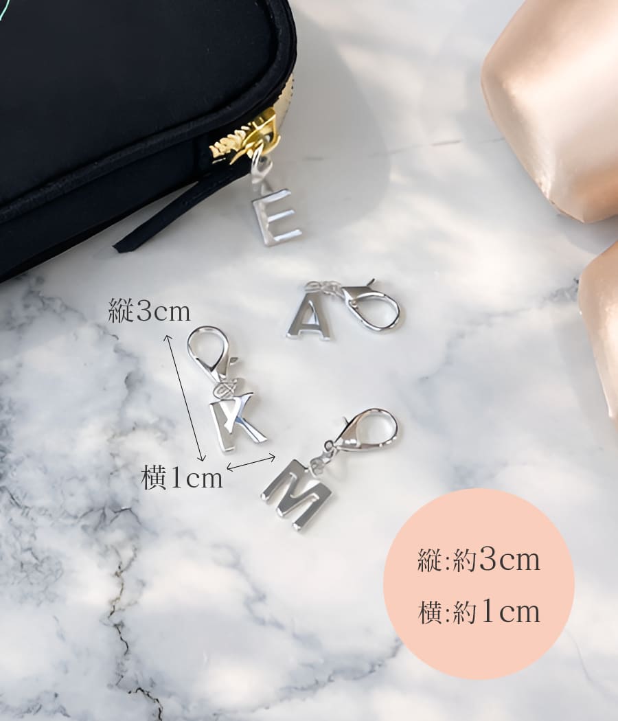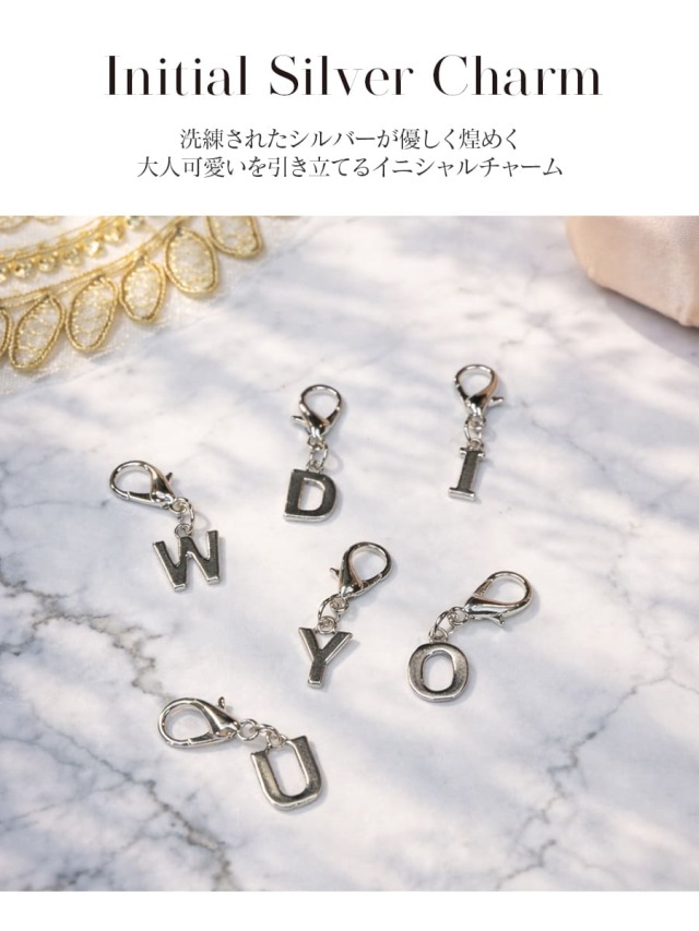 洗練されたシルバーが優しく煌めくイニシャルチャーム。