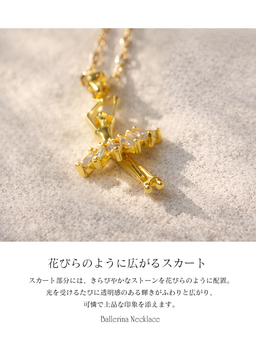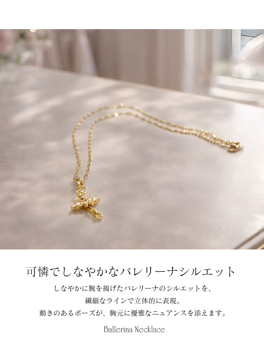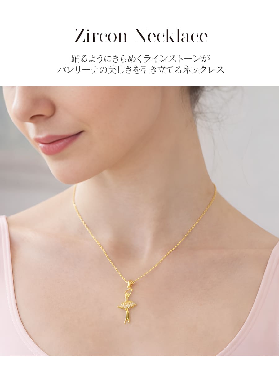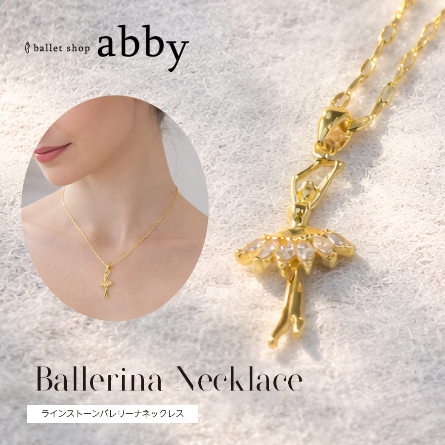 踊るようにきらめくラインストーンが、バレリーナの美しさを引き立てるネックレス。
