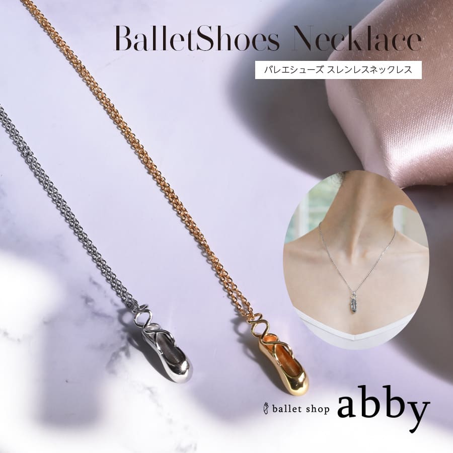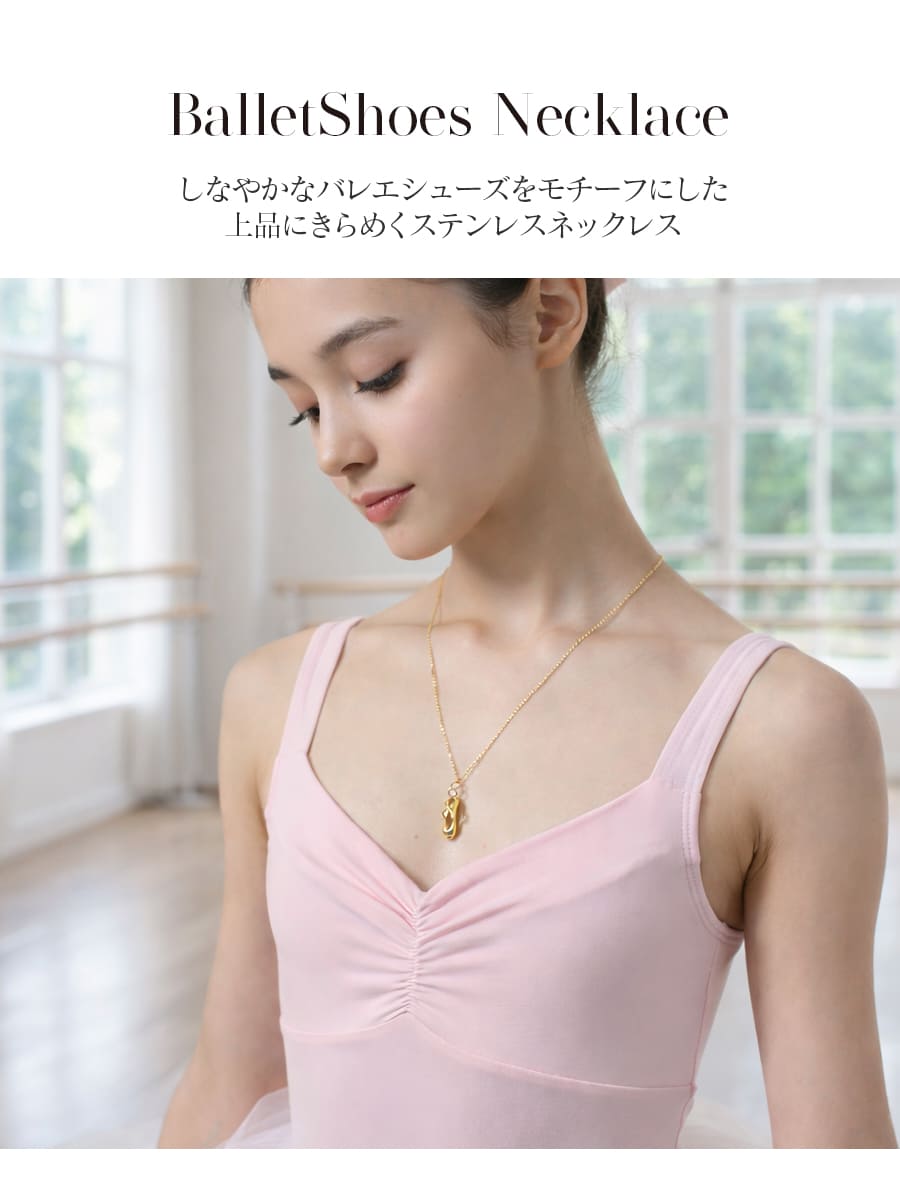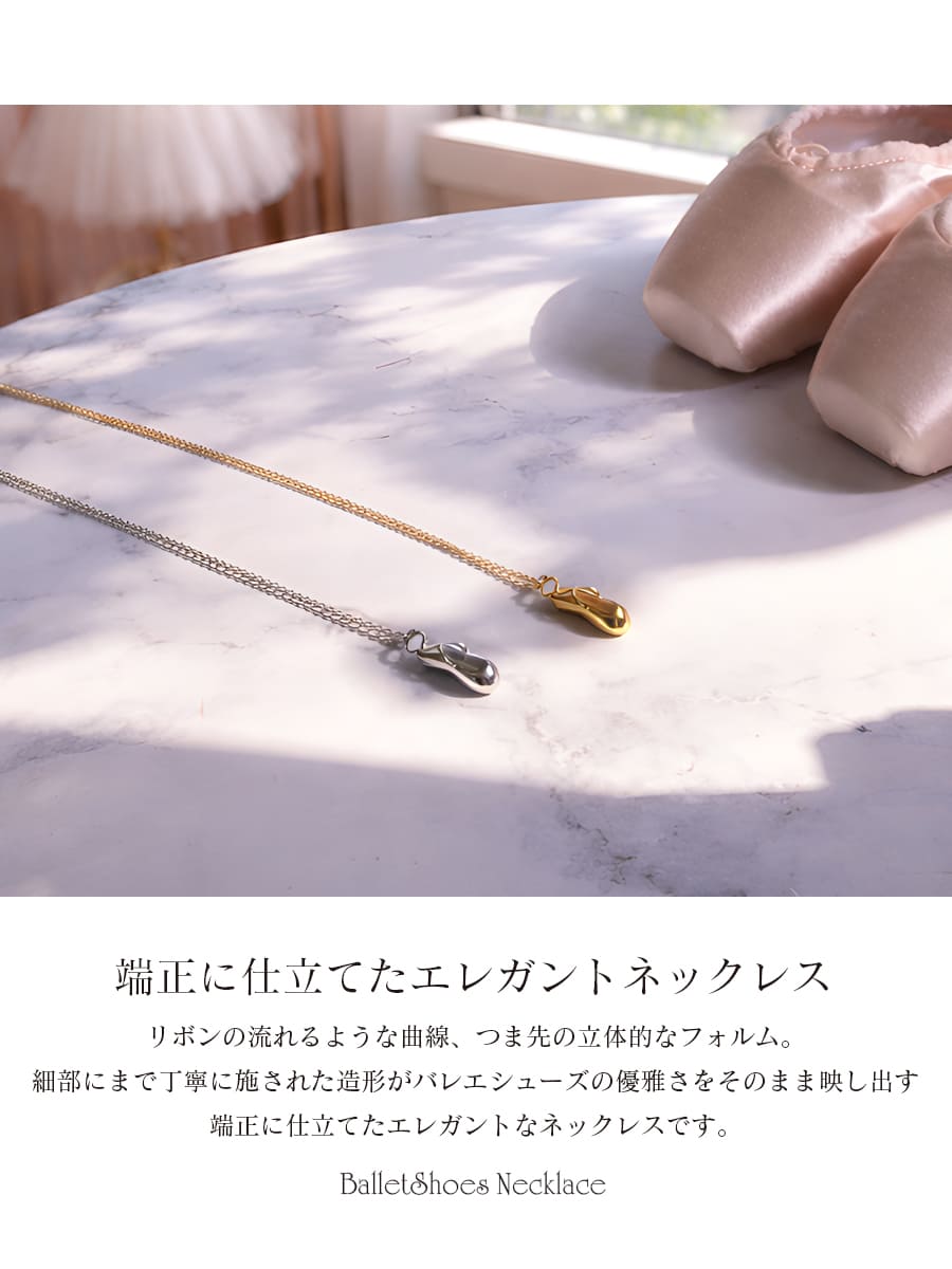 しなやかなバレエシューズをモチーフにした、上品にきらめくステンレスネックレス。