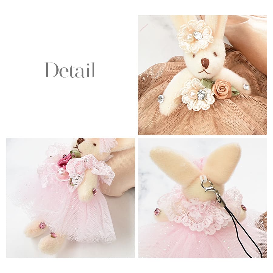 マスコット ラビット うさぎ 可愛い チュチュ レース ローズ 薔薇 ビジュー ラインストーン パール ハンドメイド 手作り チャーム ストラップ キーホルダー バレエグッズ プレゼント ギフト お揃い 贈り物 ご褒美 動物 コンクール 発表会 バレエ教室 キッズ ジュニア レディース バレエグッズ バレエ アイテム