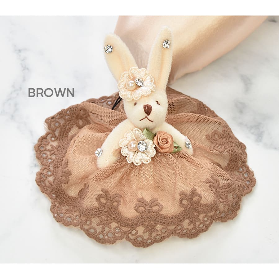 可愛らしいうさぎがチュチュをまとってバレリーナ風になりました。 胸元のローズをポイントにレースやビジュー、パールをあしらい華やかに。ストラップタイプで身の回りの小物に付けても可愛いです♪