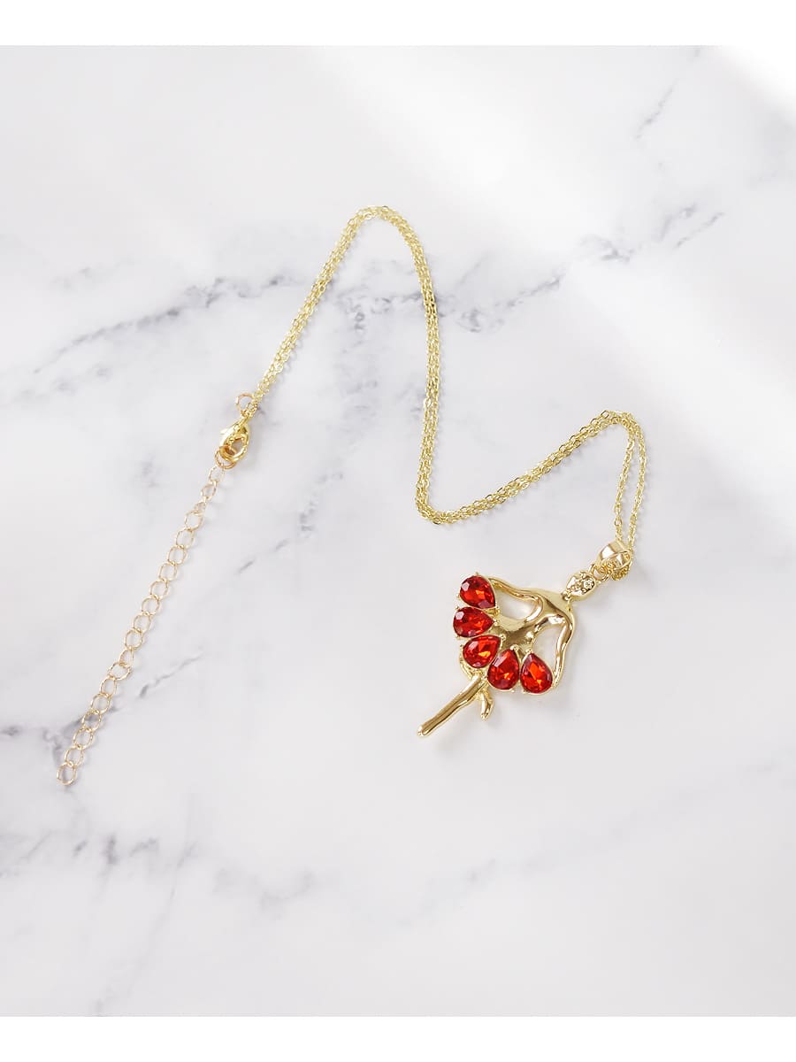 鮮やかなレッドのストーンが素敵なバレリーナモチーフのネックレス&ピアス。