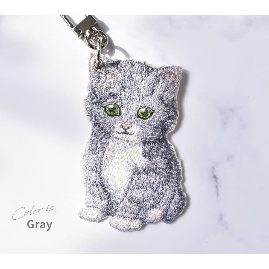 ひとつひとつ丁寧に作られたこねこの刺繍が愛らしいキーチェーン。