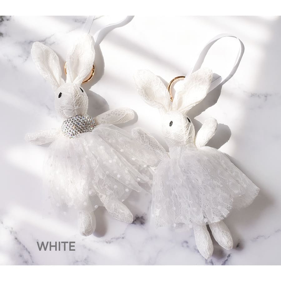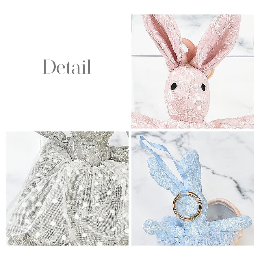 高級感あるレース素材で作られたうさぎちゃんのマスコット。