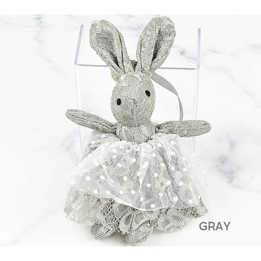 高級感あるレース素材で作られたうさぎちゃんのマスコット。 ふわふわのチュチュをまとってバレリナーになりました♪ 手のひらサイズで大き目なバッグやポーチにつけても存在感たっぷり。 専用ボックス入りでプレゼントにも最適です!