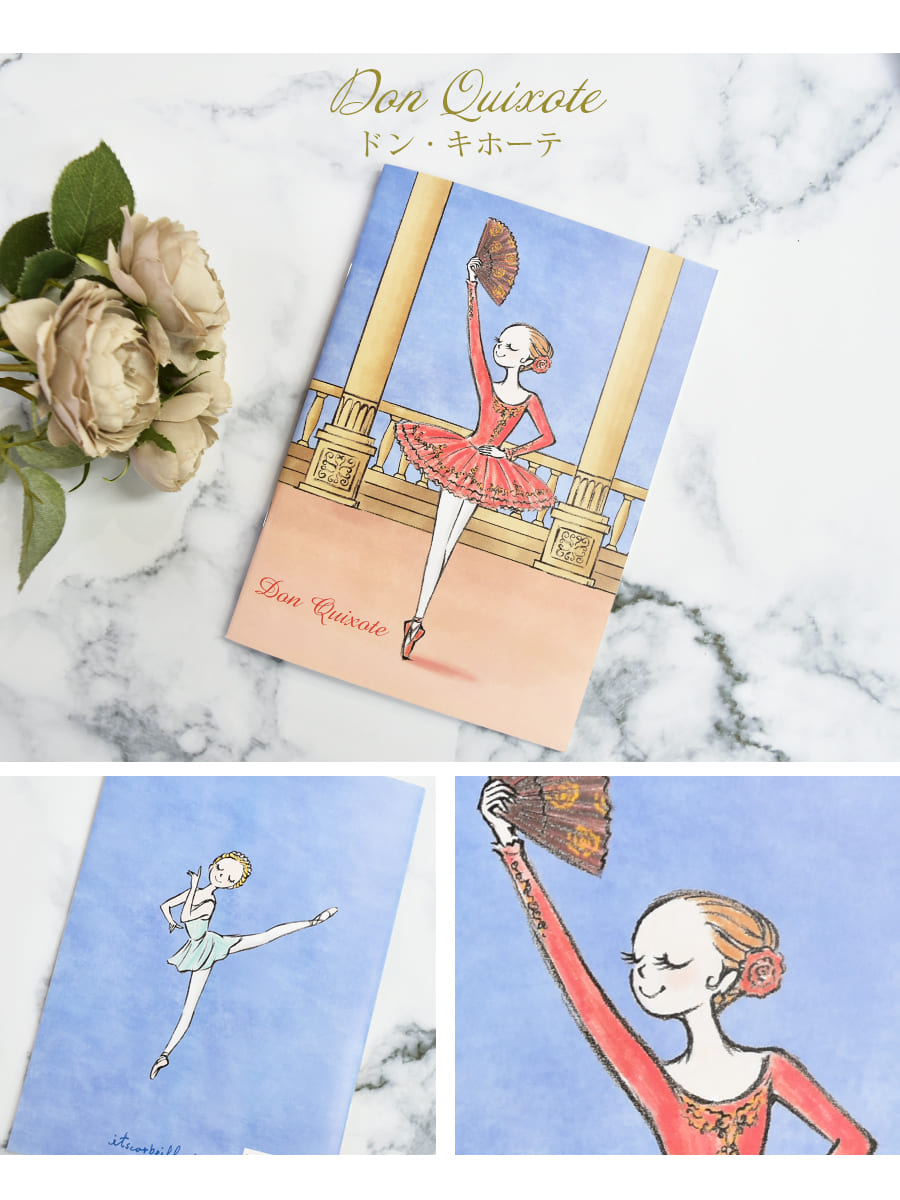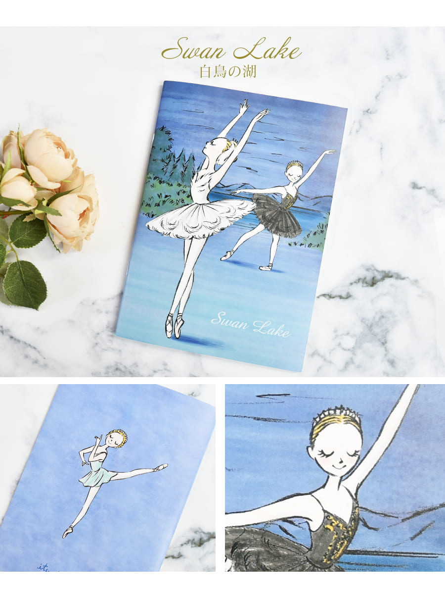 カワグチイツコさんによる愛らしく美しいバレエの世界。 コンパクトなA5サイズでレッスンノートに丁度良いサイズ感♪ 中面は可憐なバレエ女子が描かれています。 お友達とお揃いで持ったり、プレゼントにも喜ばれます。