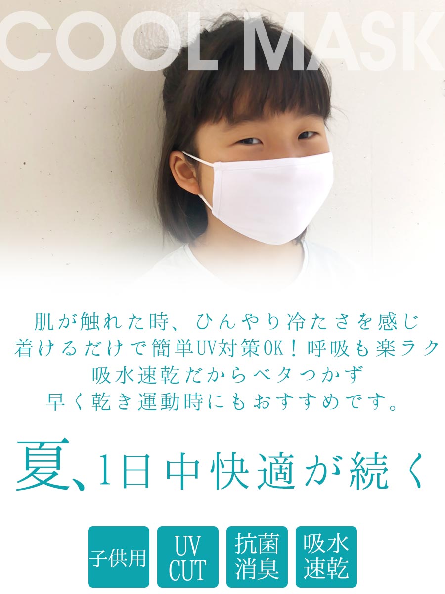 | 製品名: | 子供用マスク ひんやり接触冷感の洗える素材UVカットATB-UV+を使用 10枚までメール便可 |