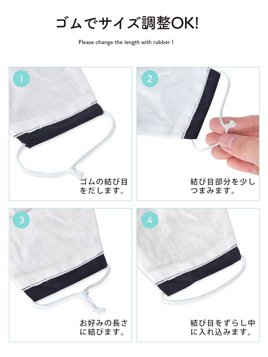 本体とダブルガーゼは柔らかな綿100%を使用。デリケートなお肌にも優しく、丈夫なので長くご愛用いただけます。マスクは繰り返し洗って使えるのでとってもエコ。2枚セットなので、洗い替えもできます。