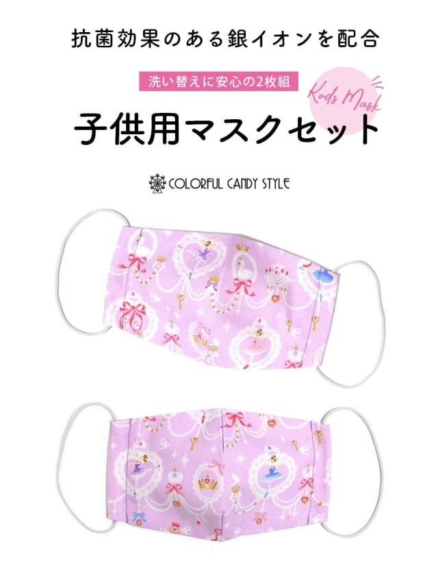 商品カテゴリ:バレエ柄 抗菌 防臭 子供用 マスク 2枚セット まとめ買い 洗濯OK レース模様にprettyバレリーナ 布マスク 綿100% カラフルキャンディスタイル N5314402