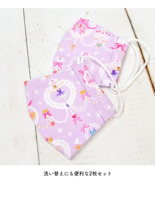 バレエ柄 抗菌 防臭 子供用 マスク 2枚セット まとめ買い 洗濯OK レース模様にprettyバレリーナ 布マスク 綿100% カラフルキャンディスタイル N5314402