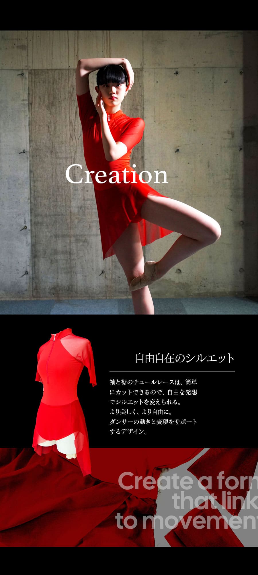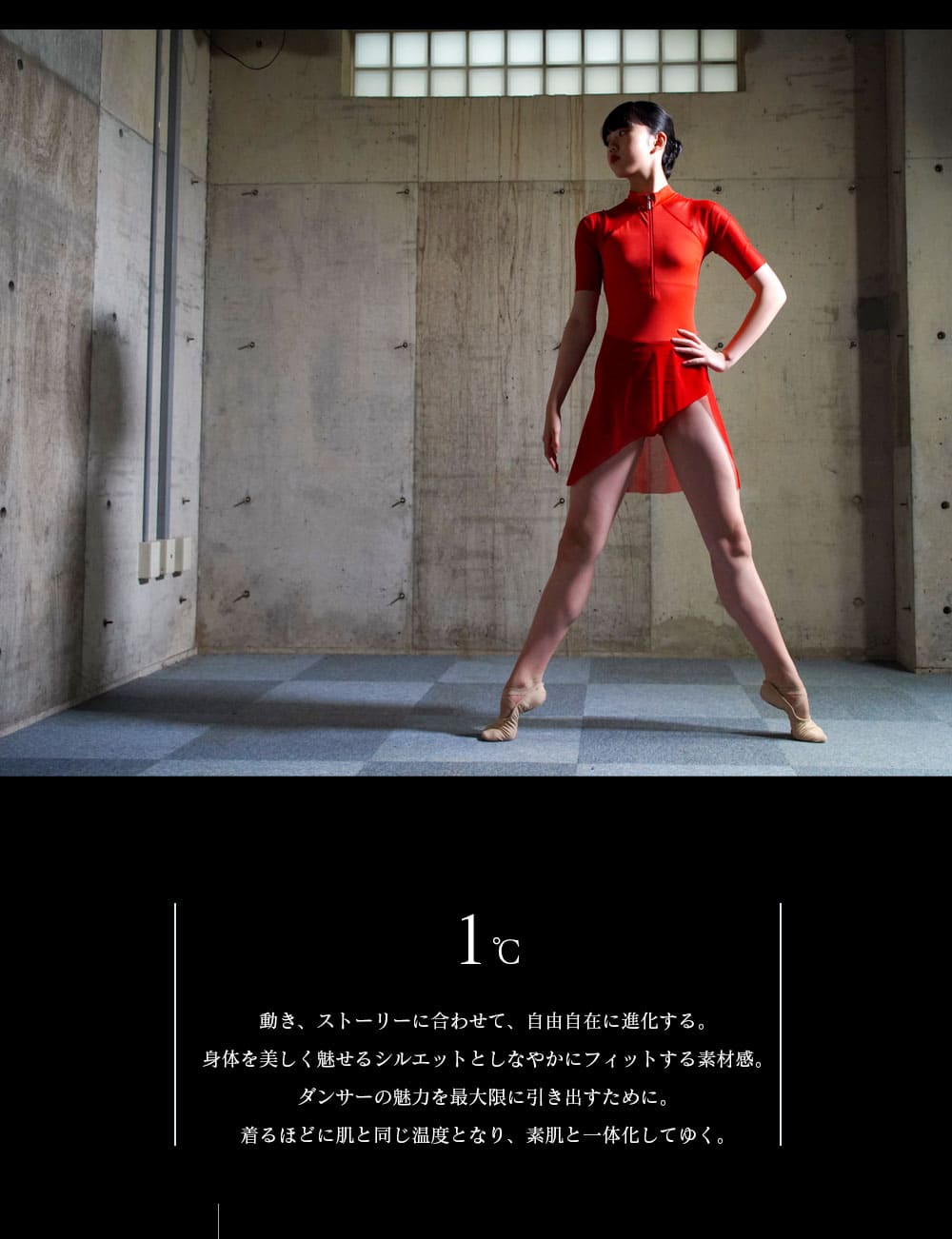 しなやかに体に馴染み、衣装との一体感を感じることができる、新しいコンテンポラリー・コスチューム。