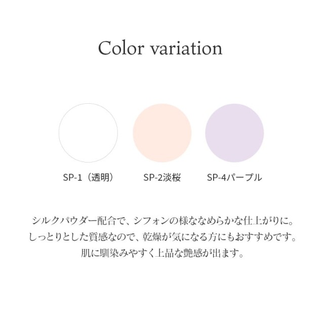 ファンデーションの色を活かしたい場合はSP-1(透明)、自然な血色を加えたい場合はSP-2(淡桜)、