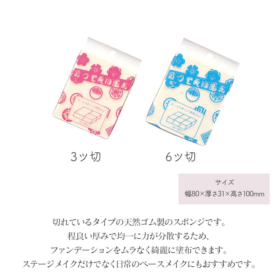 バレエ メイク 舞台メイク メイク用品 ステージメイク 舞台用化粧品 ファンデーション スポンジ 汗・水に強い化粧品 三善 みつよし ミツヨシ mitsuyoshi 発表会 コンクール ステージ 舞台 カットスポンジ(3ツ切・6ツ切)