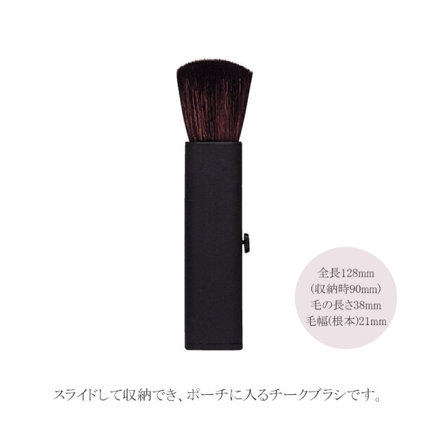スライドして収納でき、ポーチに入るチークブラシです。