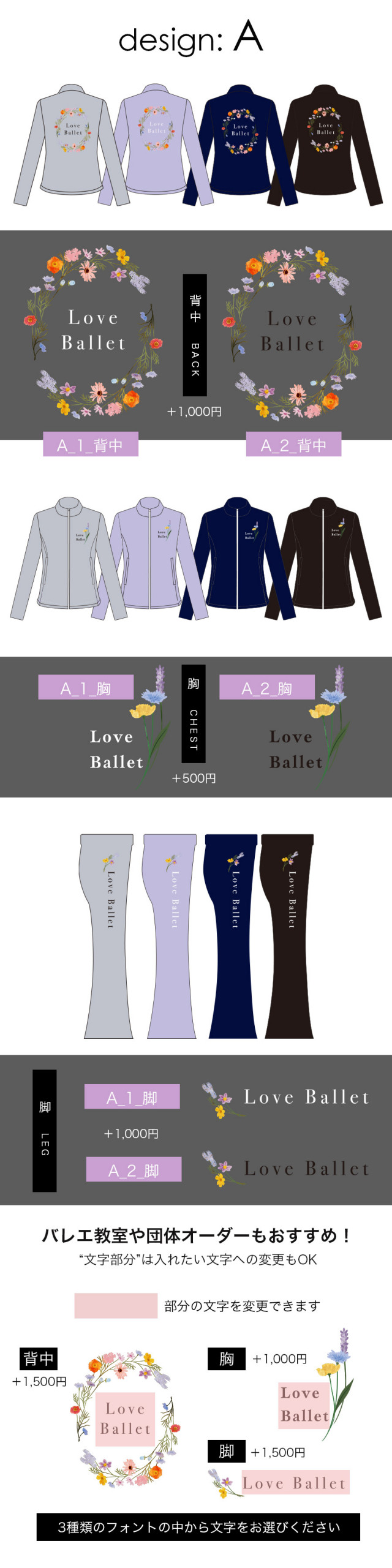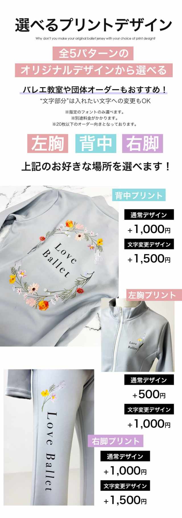 小ロットでのご注文可能ですので、バレエ教室や団体でのオリジナルジャージ作りにもおすすめです。