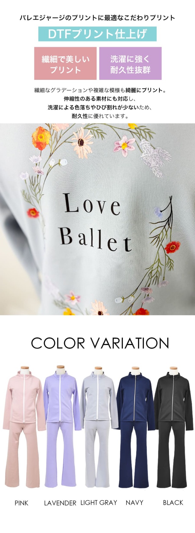 ●バレエジャージのプリントに最適なこだわりプリント:1点1点丁寧にプリントする「DTFプリント仕上げ」。繊細なグラデーションや複雑な模様も綺麗にプリント。伸縮性のある素材にも対応し、洗濯による色落ちやひび割れが少ないため、耐久性に優れています。