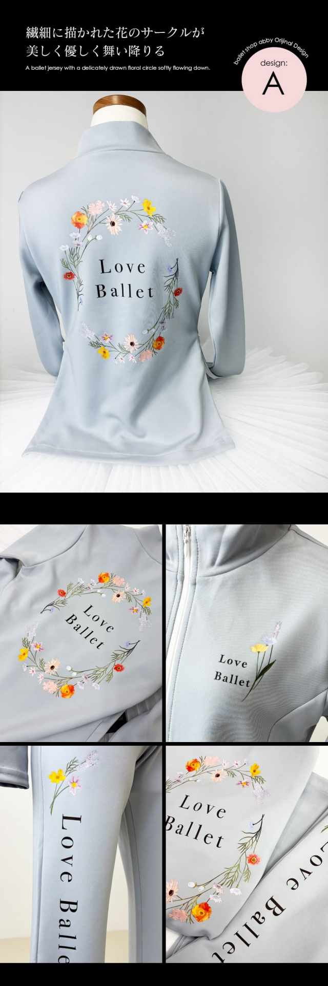 このジャージのために制作した、エレガントなバレエモチーフやフラワーデザインをプリントで表現。
