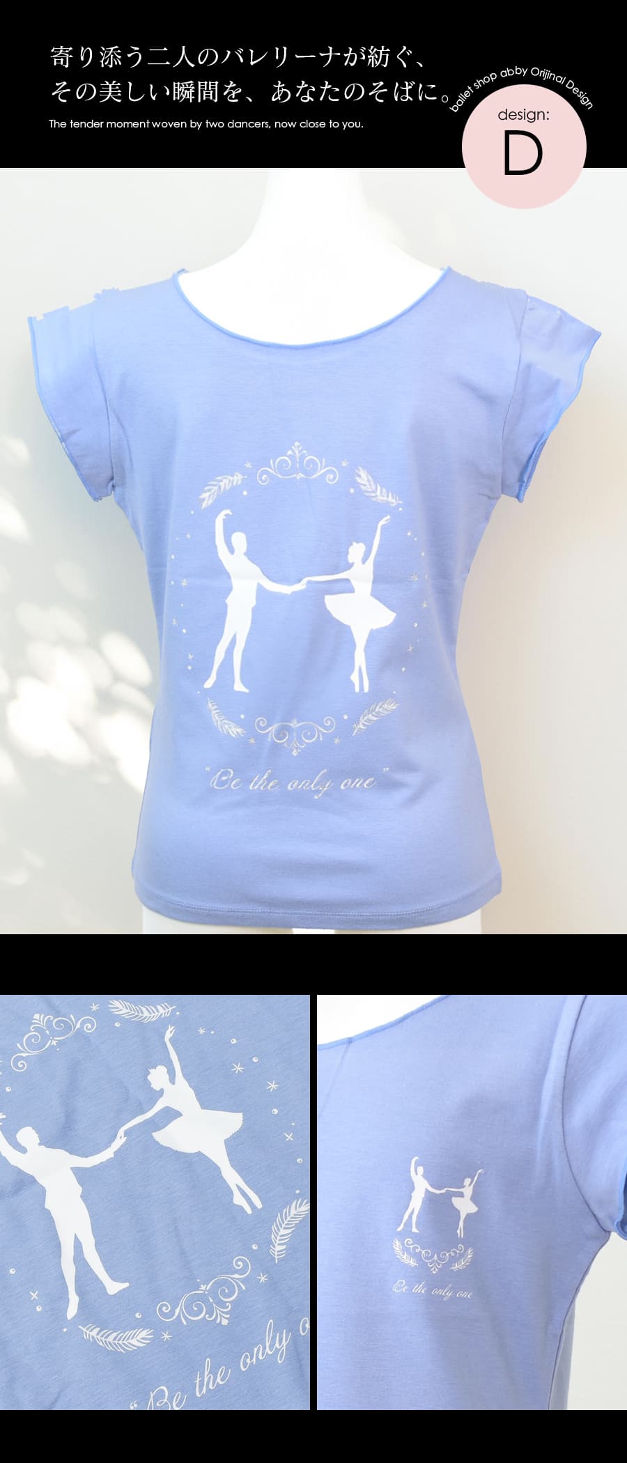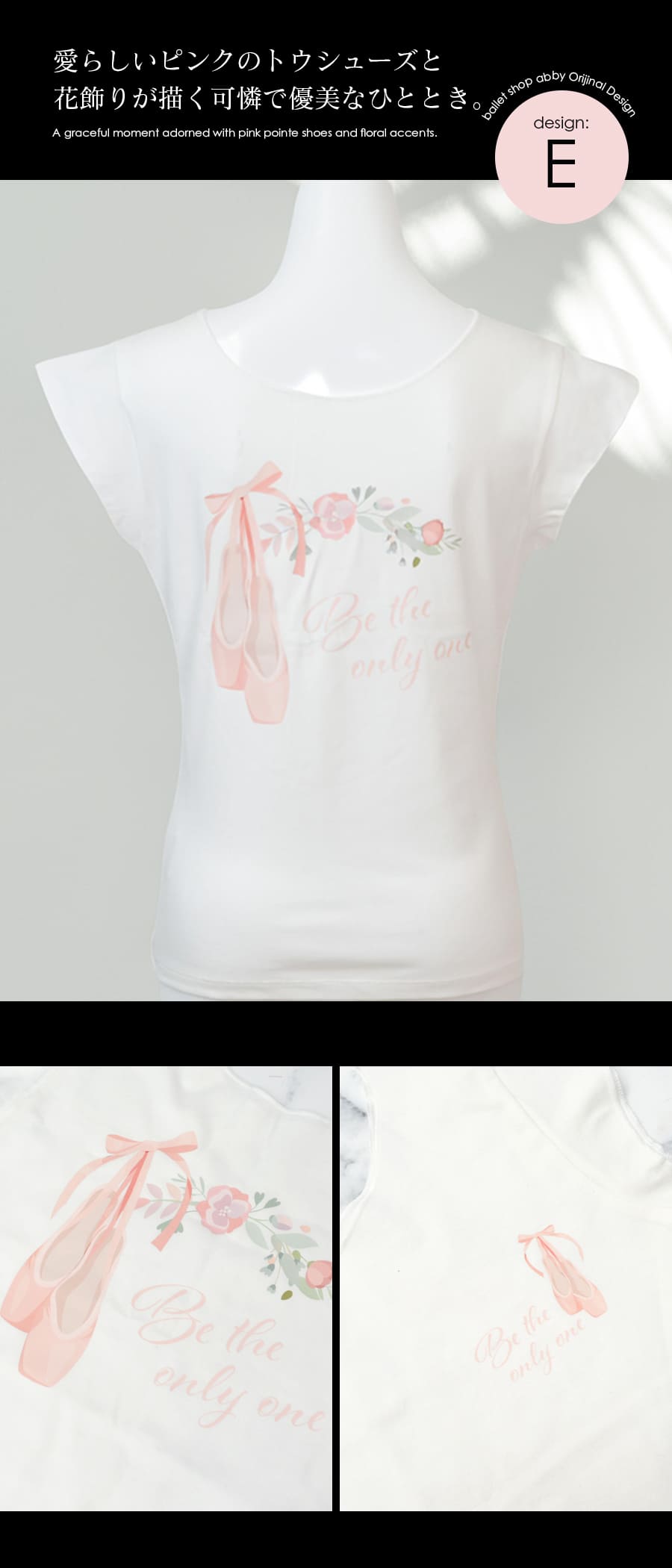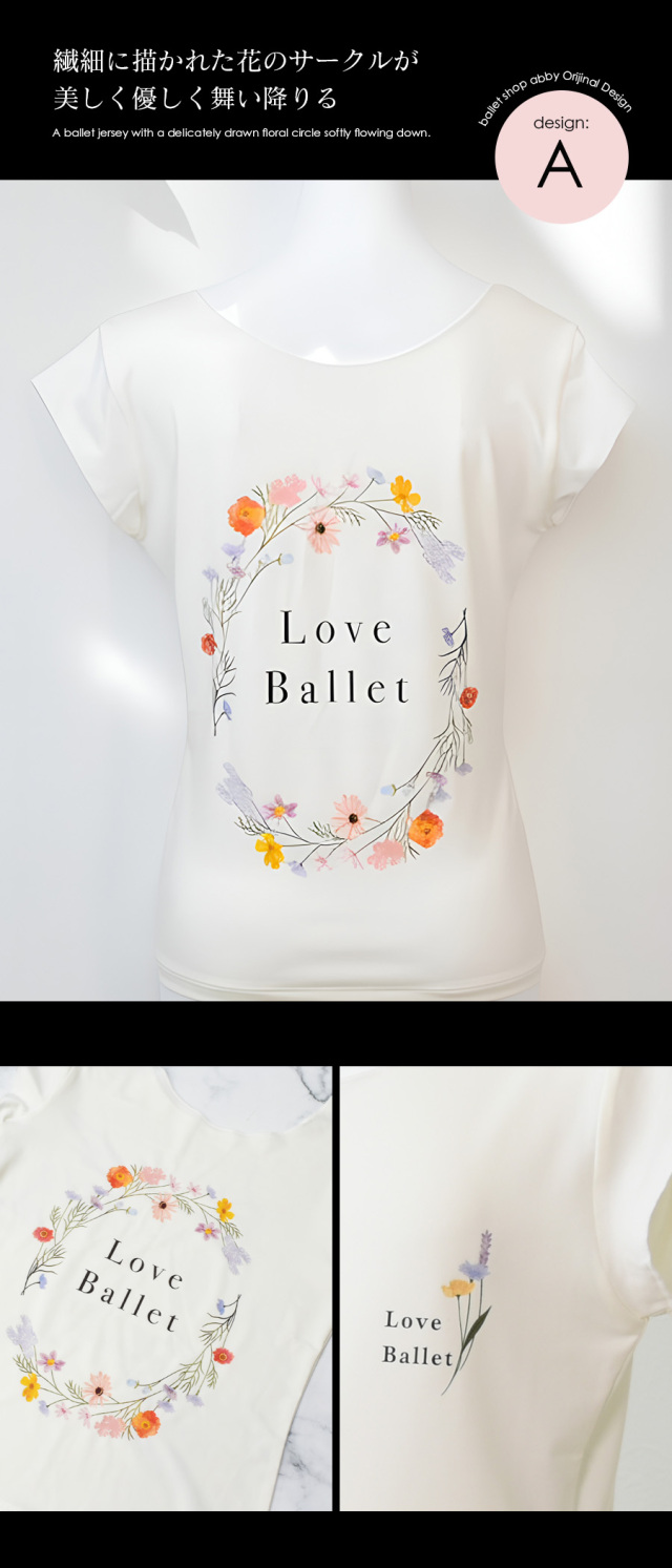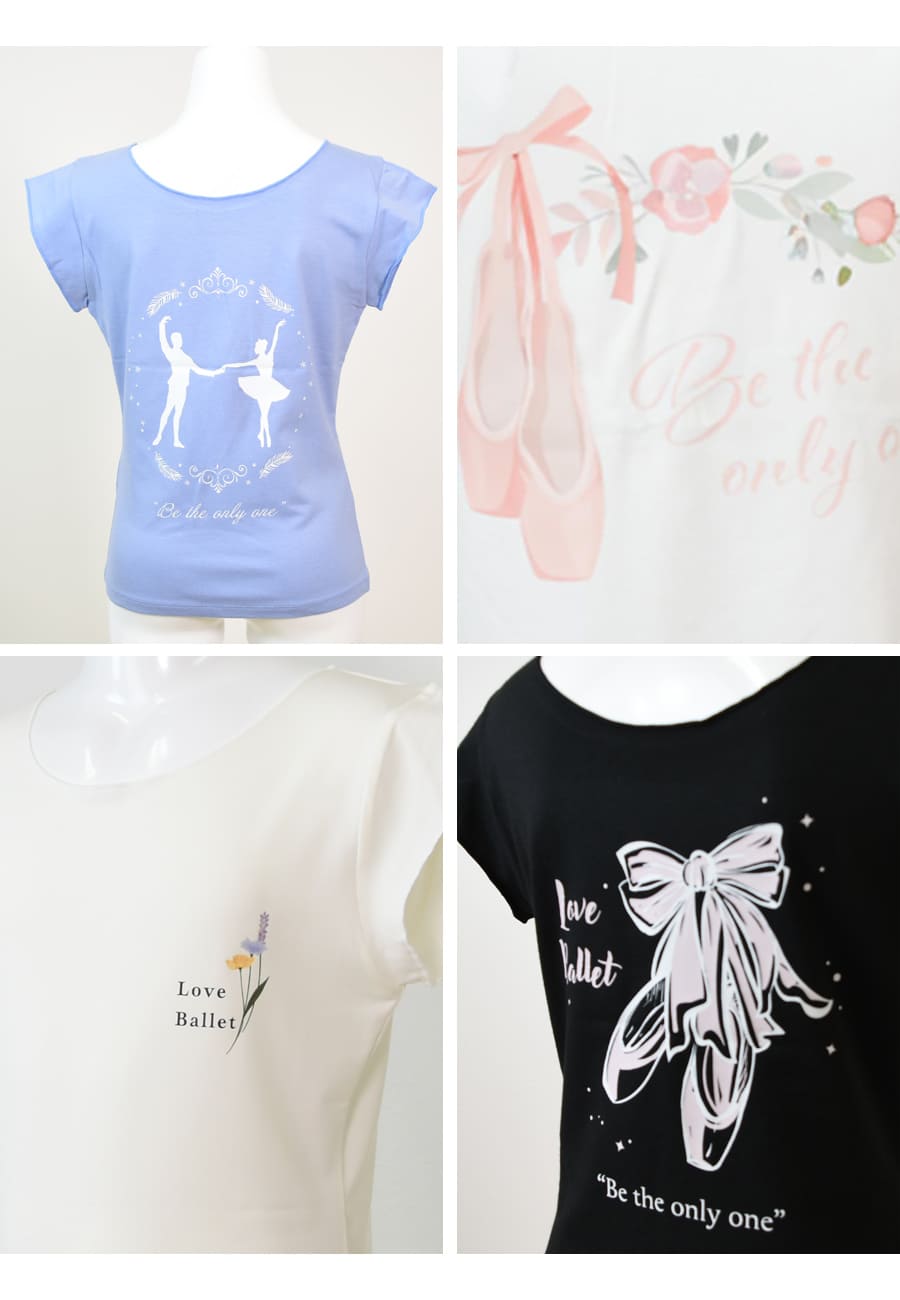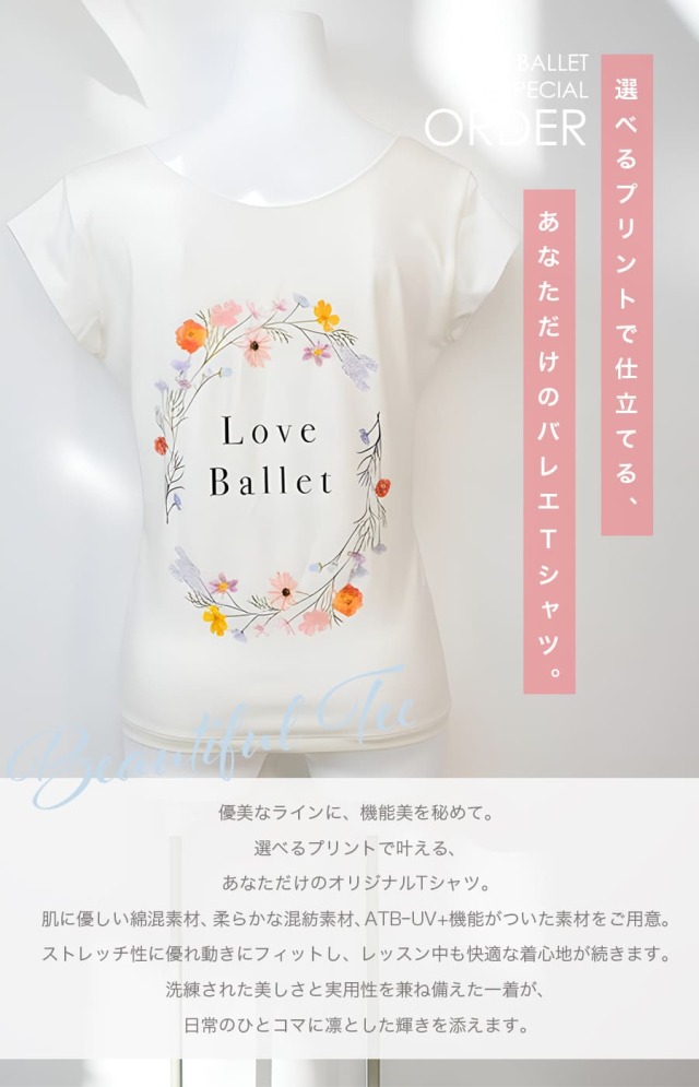 このTシャツのために制作した、エレガントなバレエモチーフやフラワーデザインをプリントで表現。