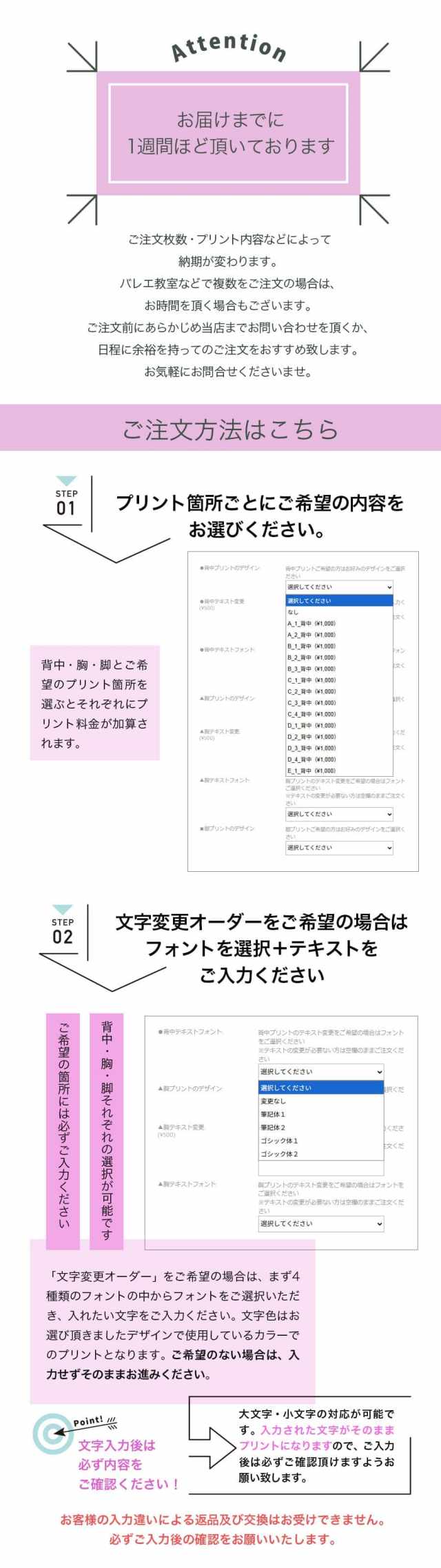・バレエ教室などで複数をご注文の場合は、お時間を頂く場合もございます。
