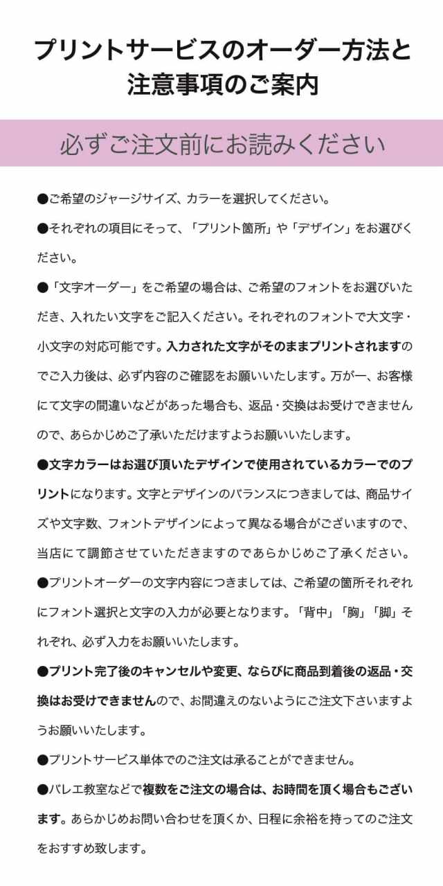 ●バレエ教室などで複数をご注文の場合は、お時間を頂く場合もございます。あらかじめお問い合わせを頂くか、日程に余裕を持ってのご注文をおすすめ致します。