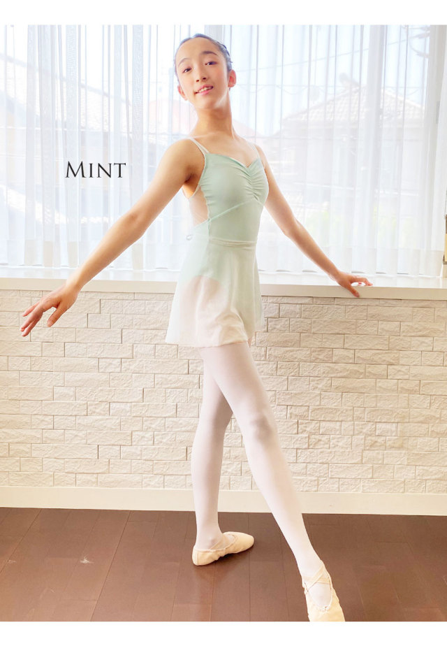 スカートは「SINAR(シナール)リッチギャザー×エレガントレースレオタード、リッチギャザー×チュールレースレオタード」の肩紐に合わせたチュールで作りました。のびやかで透明感あるチュールで、動きを軽やかに、美しくみせてくれます。また「着た時のシルエット」にとことんこだわり、試作を繰り返して、動いても、止まっても美しく見えるシルエットを実現。レオタードと合わせれば、まるで海外のバレエ学校のようなスタイルになれます。