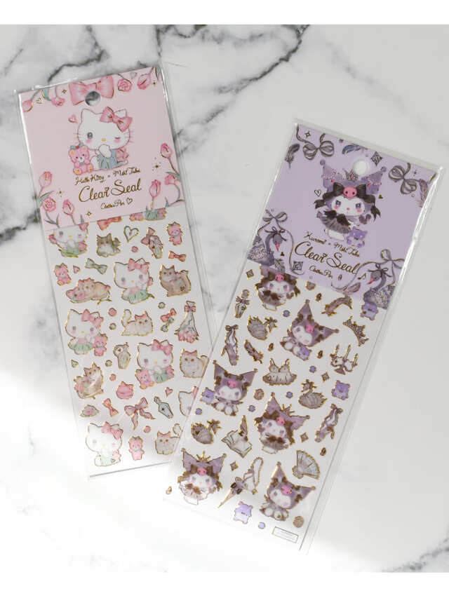 絵柄に金のふち箔加工がされているきれいな透明素材のシールです。