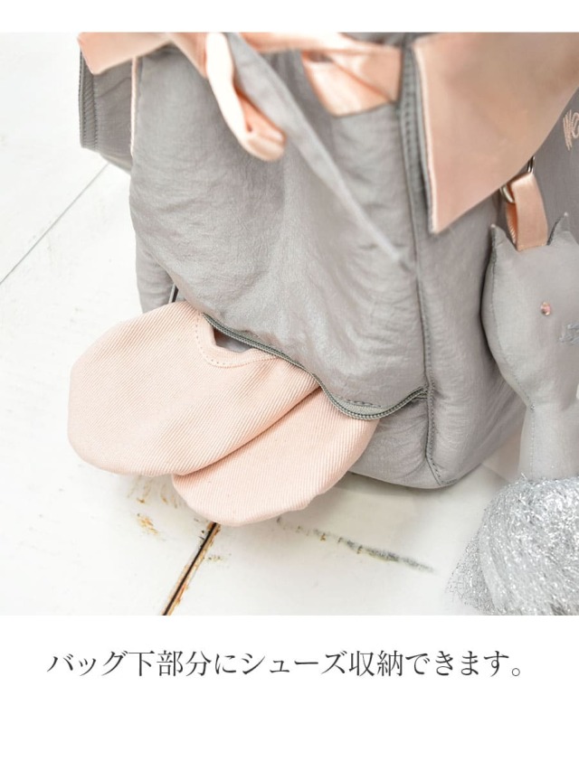 バッグ下部にはシューズが入るポケットもあり実用性も充分!レオタード、タオル、バレエシューズ、着替え、水筒が入るので習い始めたキッズのレッスンバッグとしても。