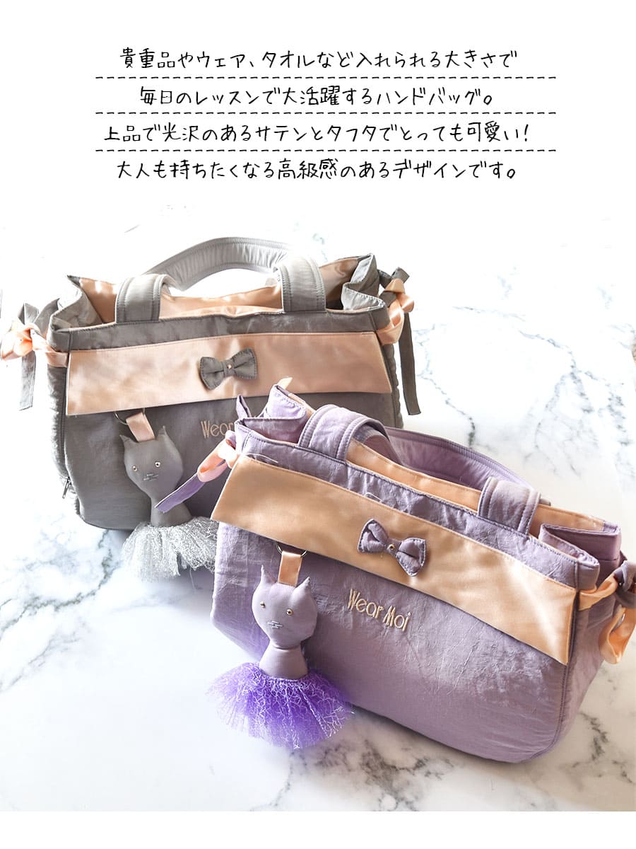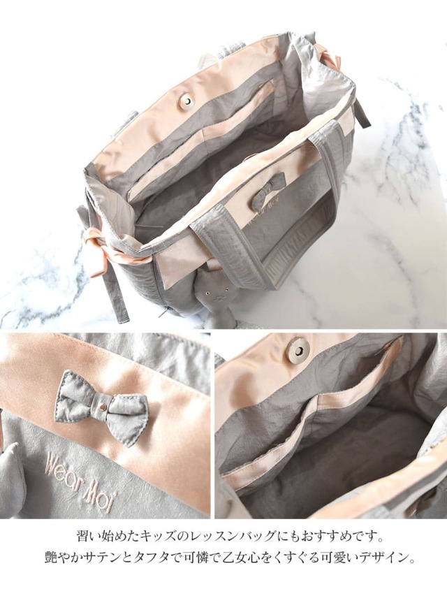 WearMoi ウェアモア wearmoi フランス DIV67 バレエ レッスンバッグ トートバッグ ハンドバッグ シューズ収納 サテンタフタ チャーム付き バッグ キッズ ジュニア プレゼント ギフト バレエグッズ バレエ アイテム