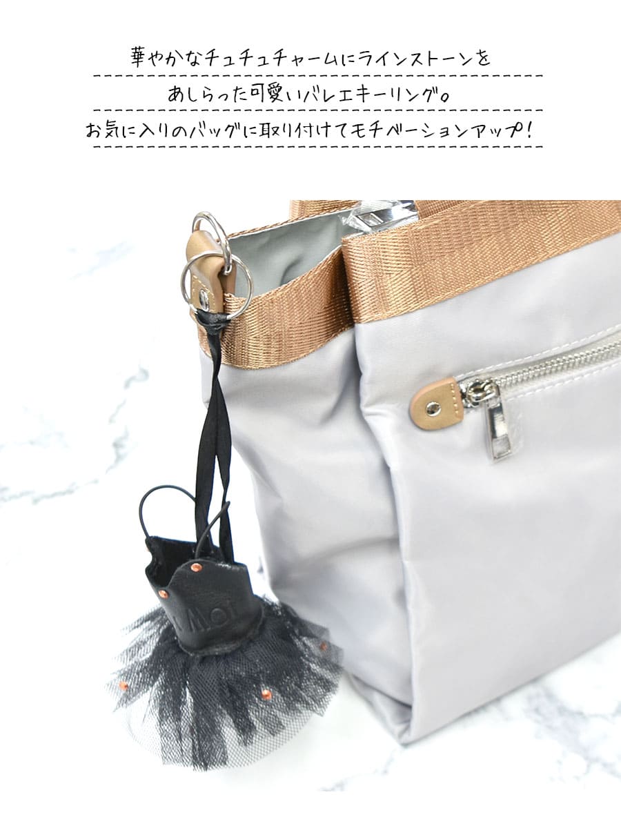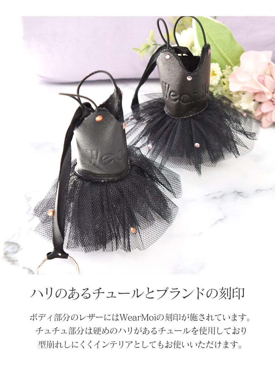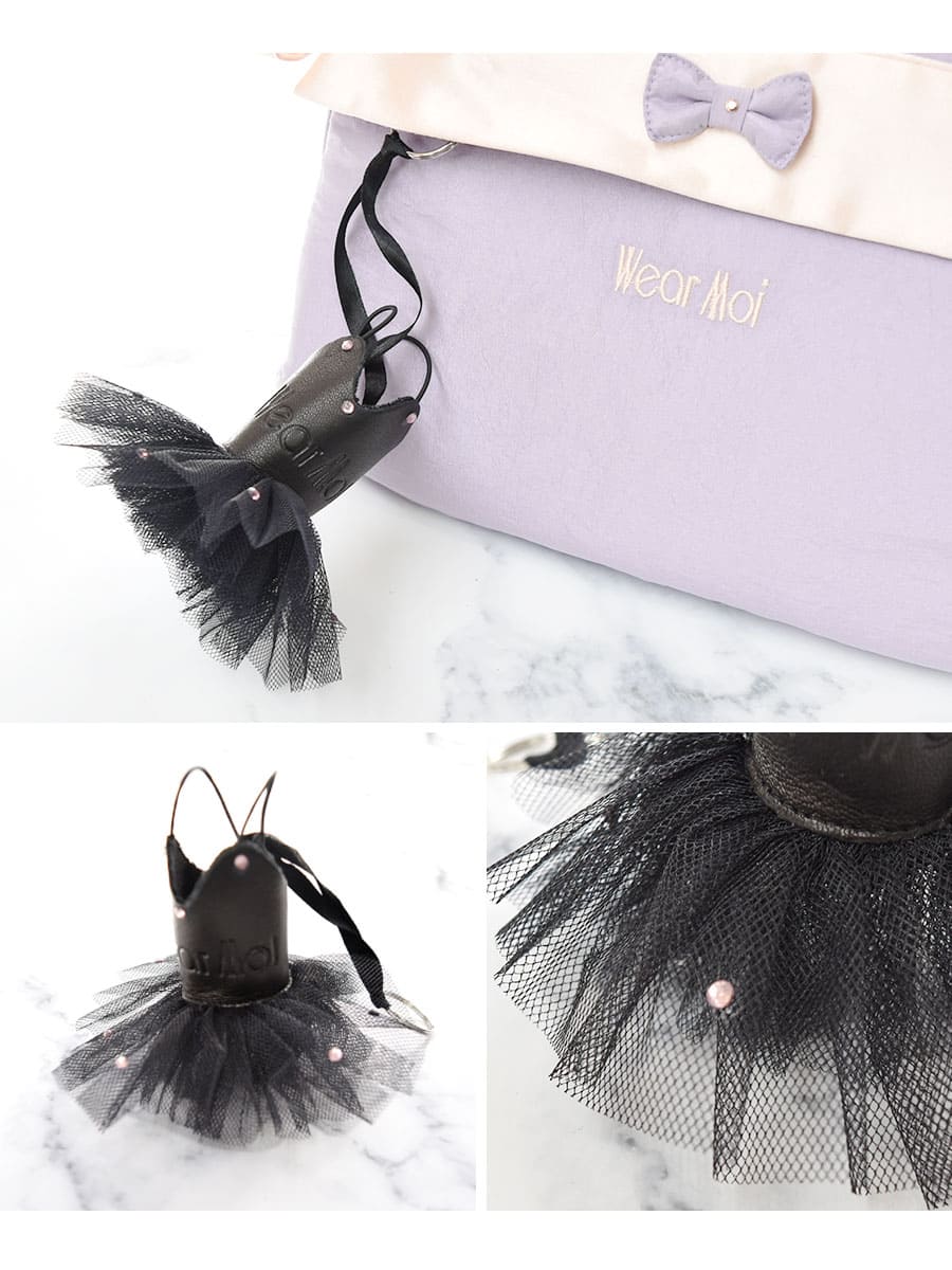 レザーとチュチュの組み合わせがとってもおしゃれなWearMoiならではのキーリングです。毎日使うレッスンバッグにつけて練習のモチベーションアップに!