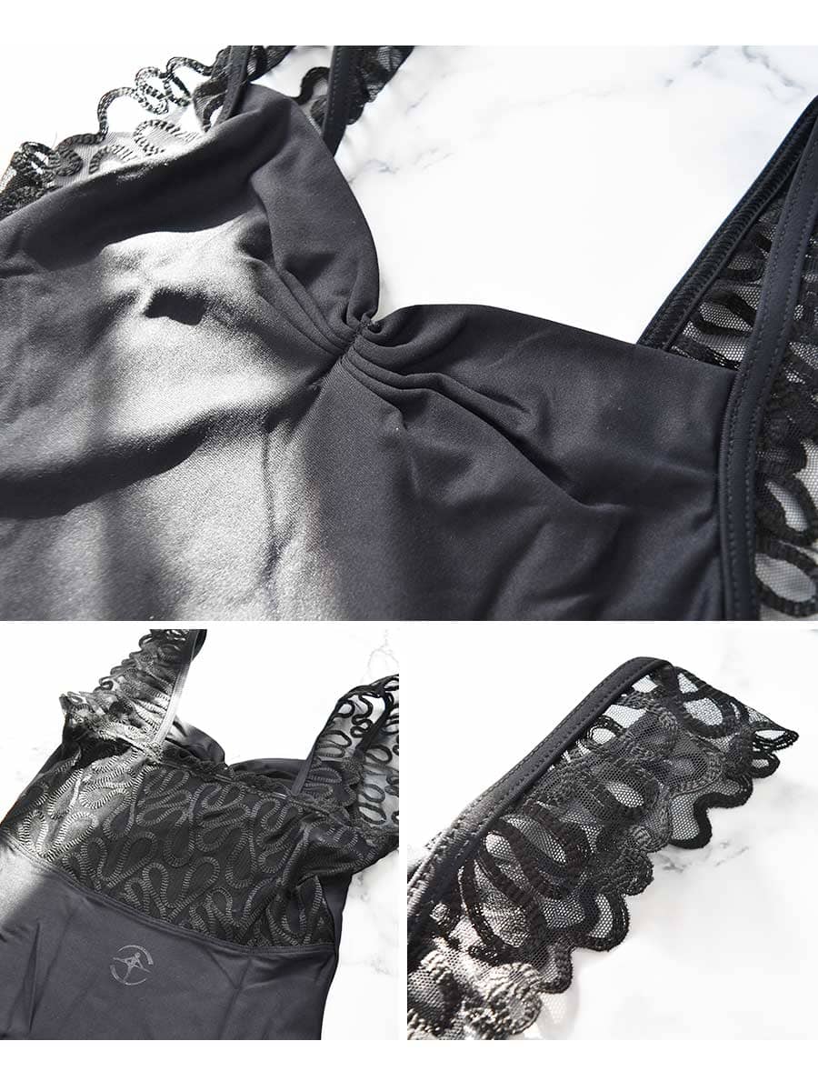 マイクロファイバーと透明感のあるストレッチチュールを使用した伸びのよい着心地快適なレオタード。