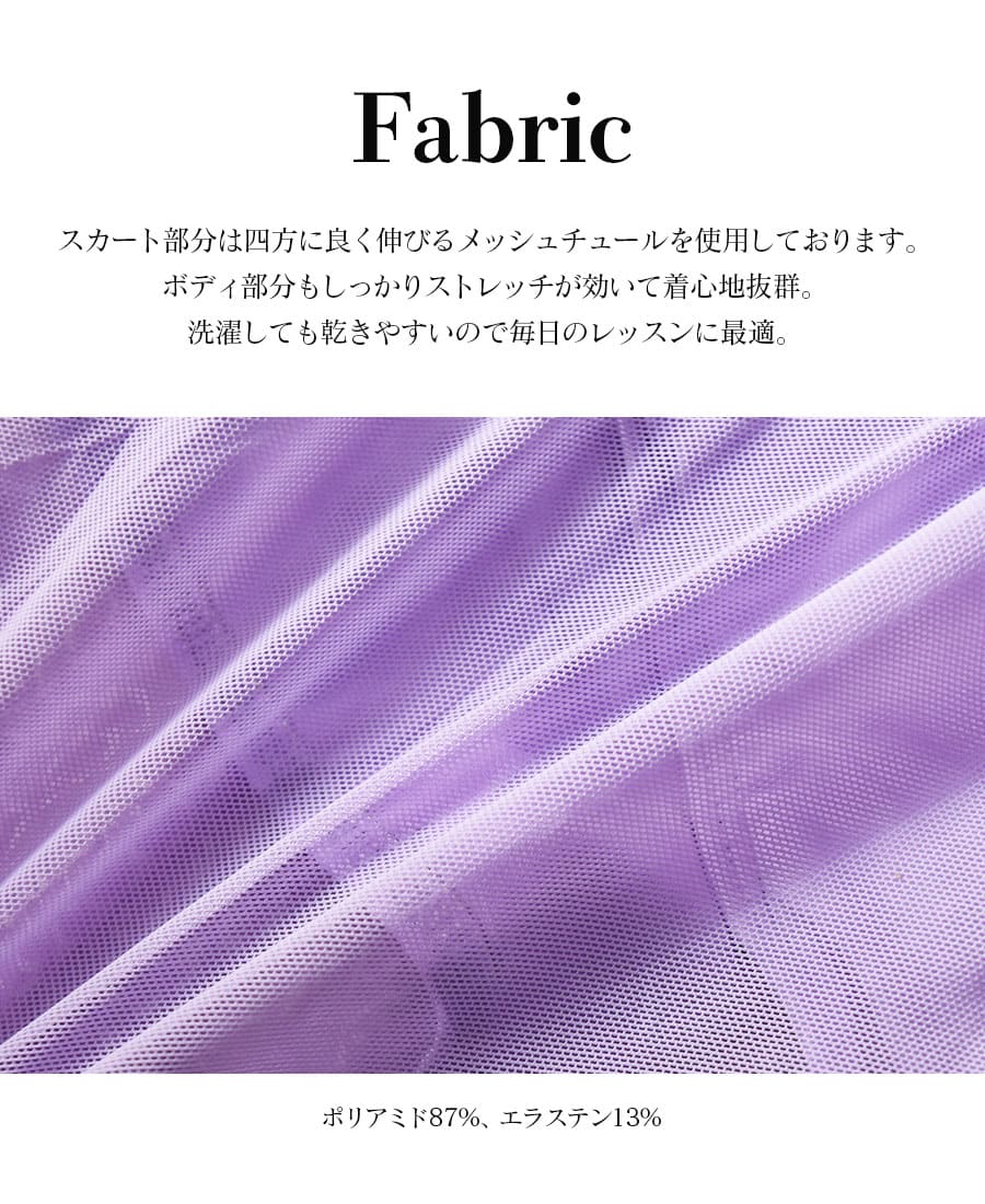 レースの透け感やひらひらと軽やかに動くスカートがとっても可愛いと好評!動きやすく身体に馴染むフィット感などすべてにこだわったレオタードです。